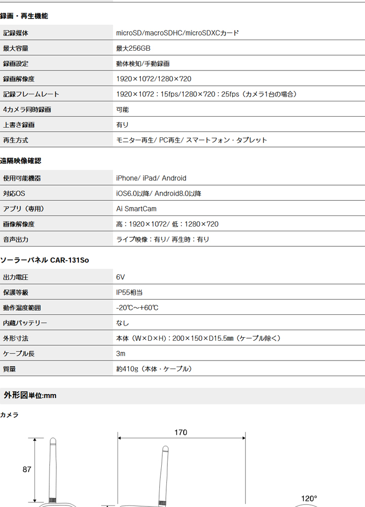 【CAR-101】キャロットシステムズ製 ソーラーバッテリー無線カメラ &モニターセット (代引不可・返品不可)