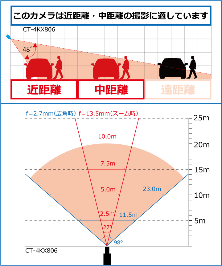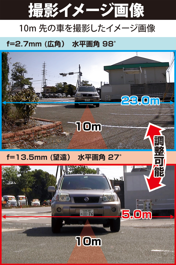 f=2.7~13.5mm 電動ズーム&オートフォーカス(TVI時のみ)