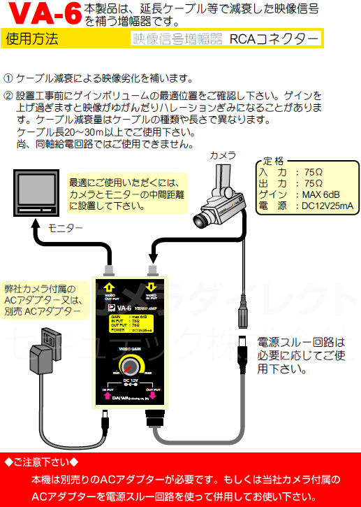 【CT-A023】防犯カメラ・監視カメラ用ビデオアンプ 映像信号増幅器(RCA/VA-6)