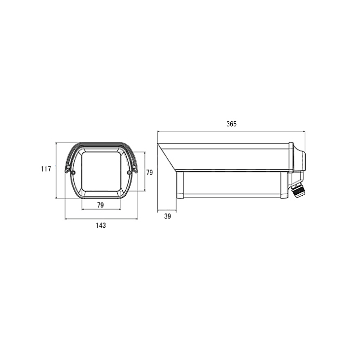 - ケーブル入線部寸法サイズの都合上、配線ケーブル CT-XXN(BNC)シリーズ、CT-XXA(RCA)シリーズはハウジング内部には入線できません。