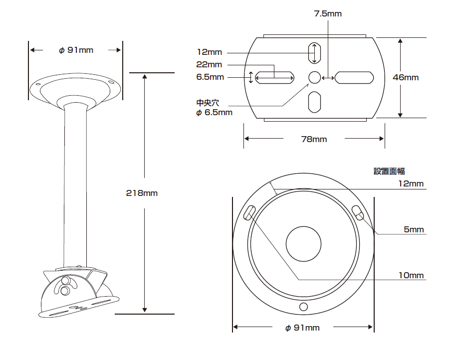 218(高)×φ91(設置面)mm ※カメラ取付部水平時