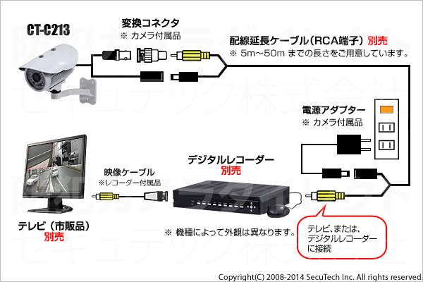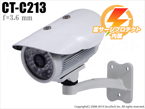 【CT-C213】41万画素 800TVL 雷サージプロテクト内蔵 赤外線暗視カメラ (f=3.6 mm)
