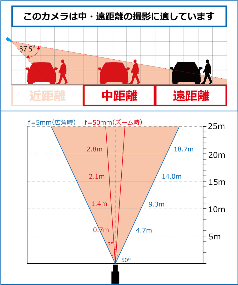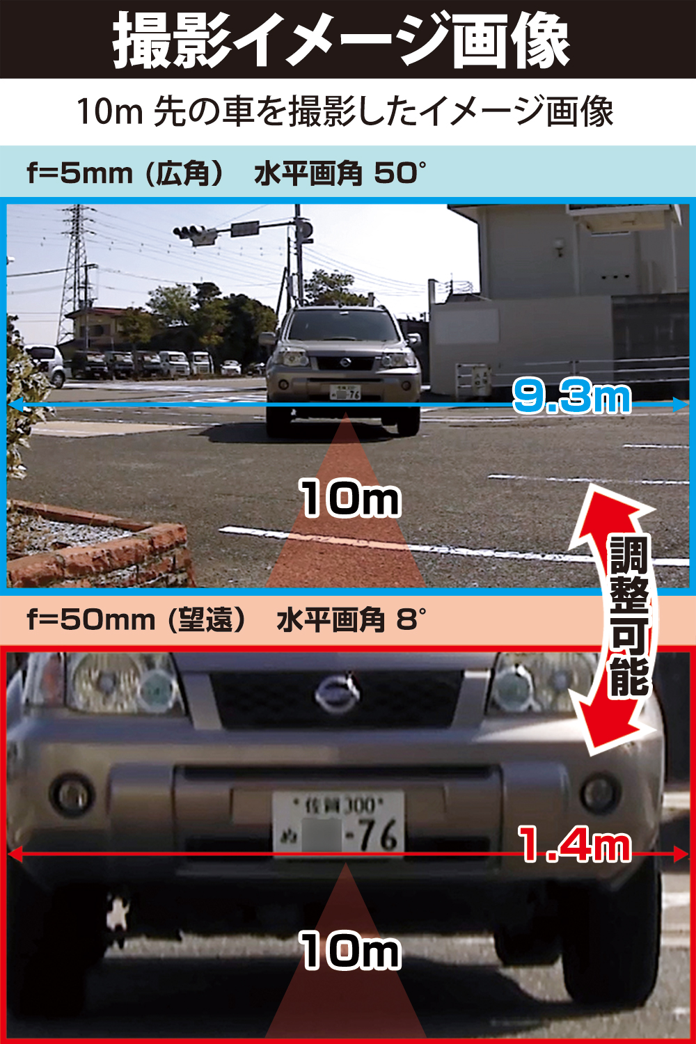 f= 5~50mm 水平画角 約 8~50° (5MP時)
