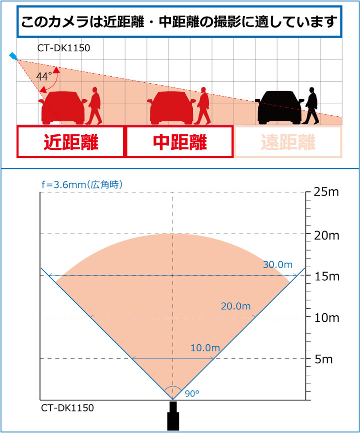 f= 3.6 mm 水平画角 約 90 ° (※ 5MP時)