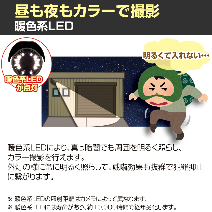 夜間撮影補助 暖色系LED 2個 (最大 20m範囲内)