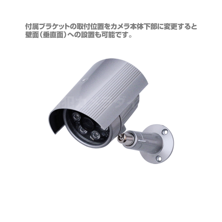 付属のブラケットの付替えで天井から吊るして設置、壁面に設置とどちらにでも可能 低予算で防犯効果を発揮できます。