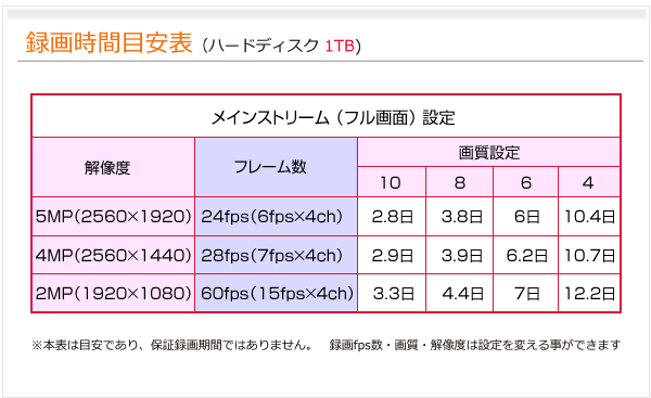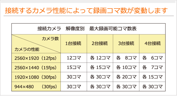 ■カメラ解像度別最大録画可能コマ数