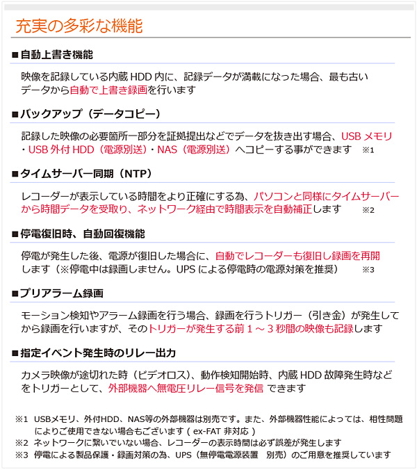常時録画 / スケジュール録画 / モーション録画