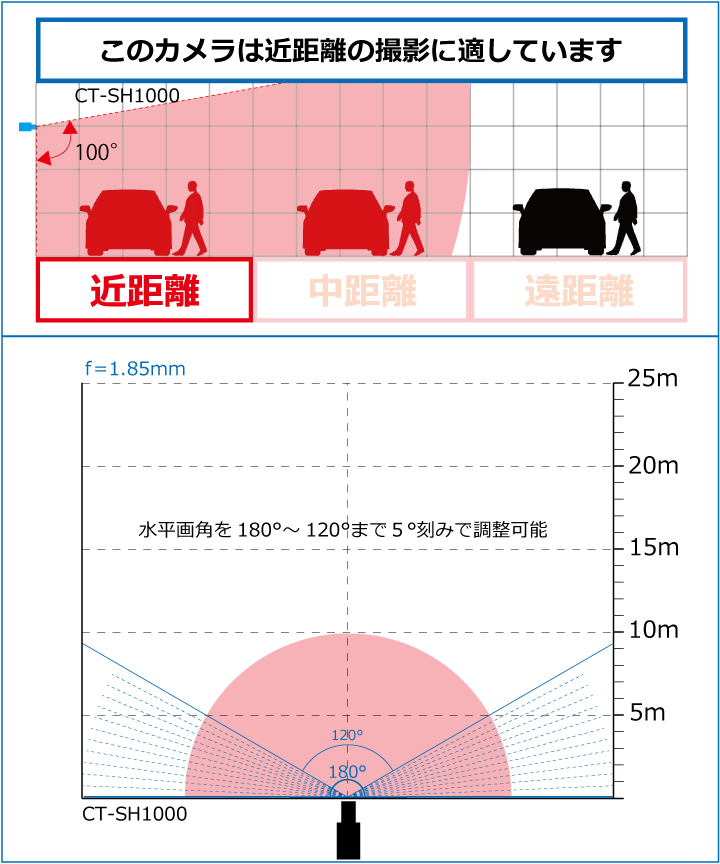 【CT-SH1000】220万画素 集音マイク搭載 広角撮影180°暗視パノラマAHDカメラ(f=1.85mm)