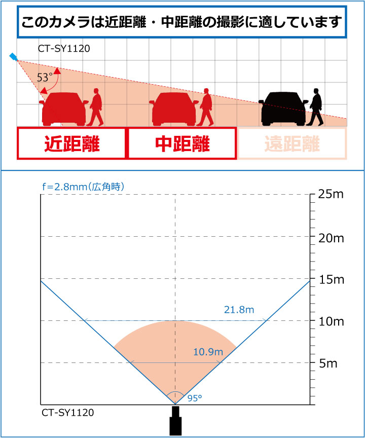 f= 2.8 mm 水平画角 約 95 ° (※ 5MP時)