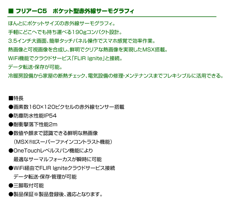 【フリアーC5】ポケット型赤外線サーモグラフィ 3.5インチ タッチパネル(代引不可・返品不可)