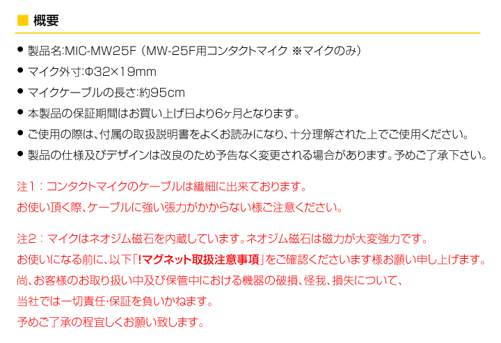MW-25F用コンタクトマイク ※マイクのみです。