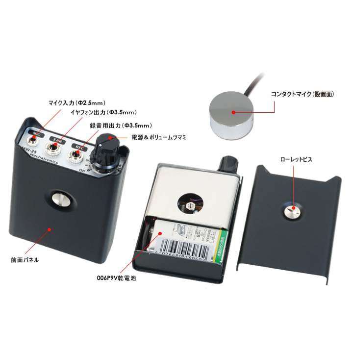MW-25Fは、アンプ、コンタクトマイク、イヤホンで構成される入門用コンクリ-トマイクです。