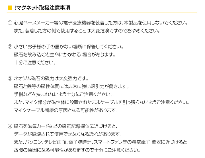 マイク内部にネオジム磁石を内蔵しており、マイク設置面が磁性体の場合強い磁力で固定できます。