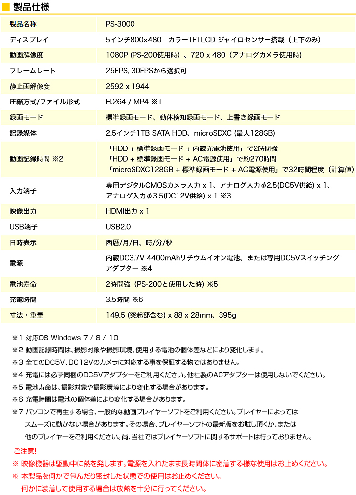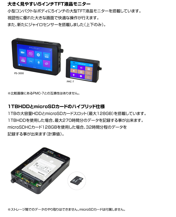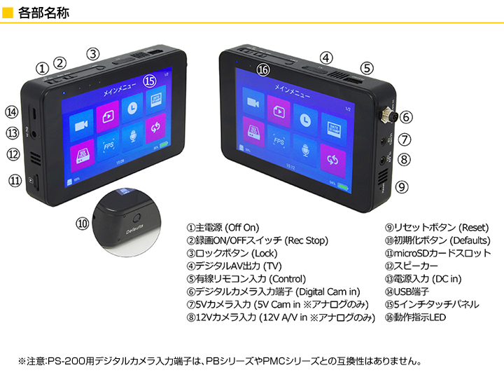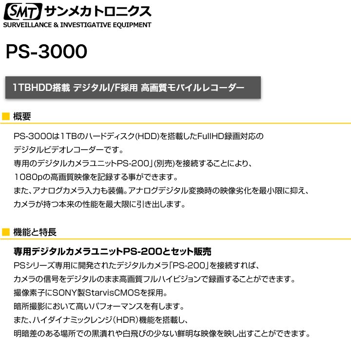 【PS-3000-200SET】PS-3000 高画質モバイルレコーダーとPS-200 デジタル防犯カメラセット サンメカトロニクス(代引不可・返品不可)