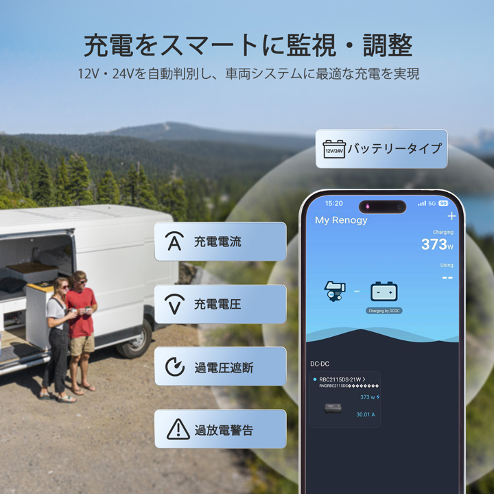 【RBC2115DS-21W】レノジー RENOGY REGOシリーズ 12V/24V-12V/24V 30A 双方向 DC-DC 走行充電器(返品不可・代引不可)