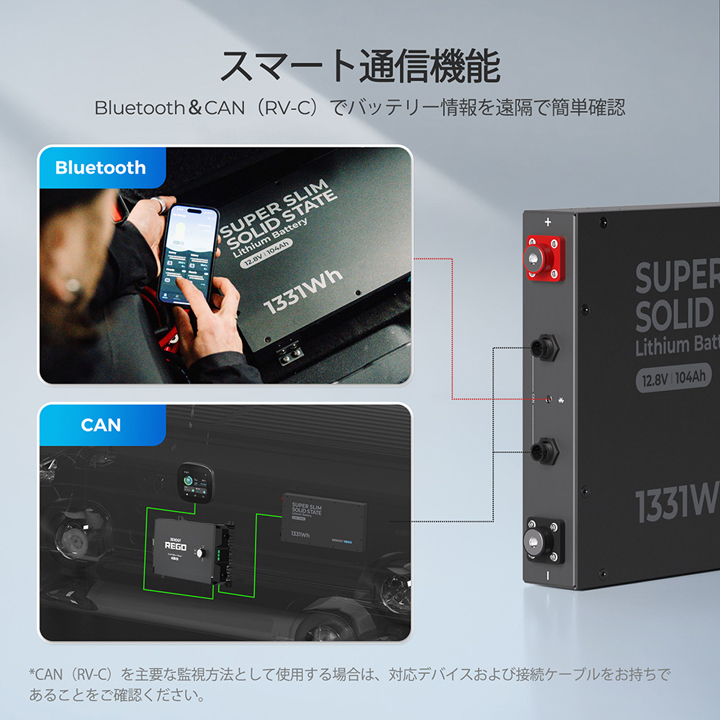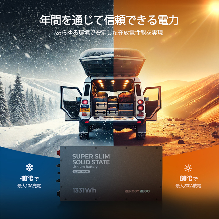 【RBT12104LFP-SSL-BT】レノジー RENOGY REGO シリーズ 12.8V 104Ah 超薄型半固体リン酸鉄リチウムイオンバッテリー(返品不可・代引不可)