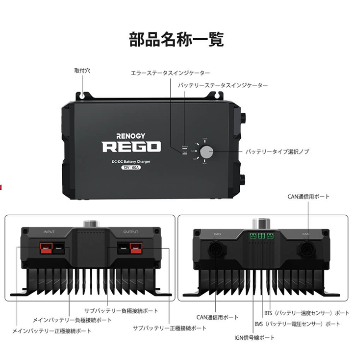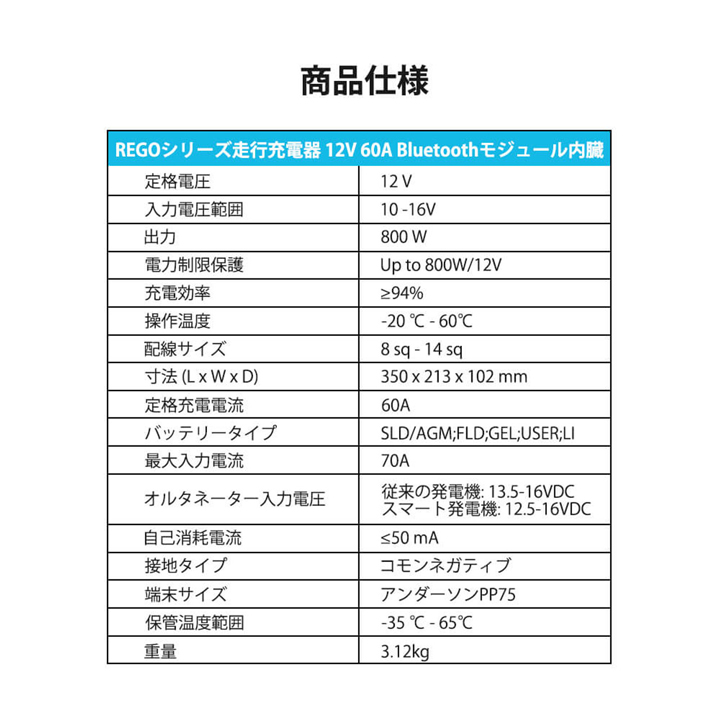 【RCB1260DO-100506PR】レノジー RENOGY REGOシリーズ 走行充電器12V 60A Bluetoothモジュール内蔵 (返品不可・代引不可)