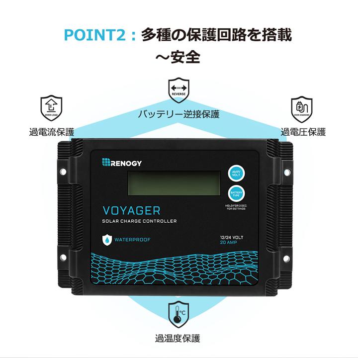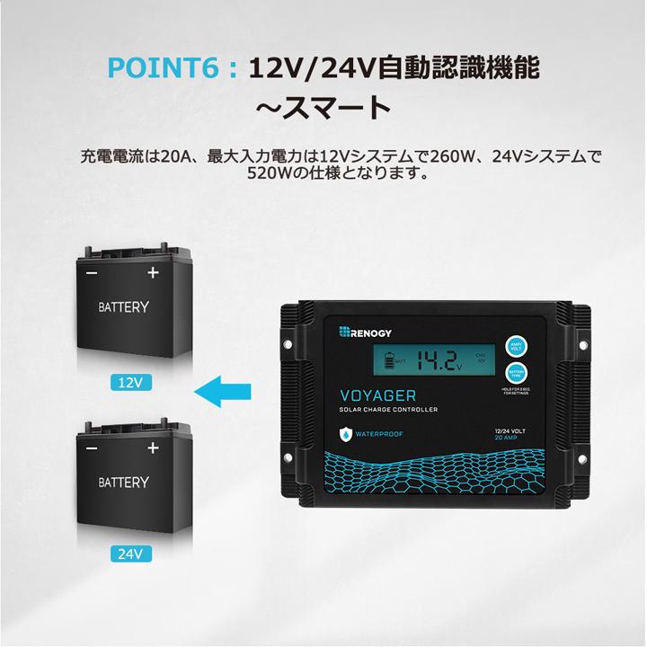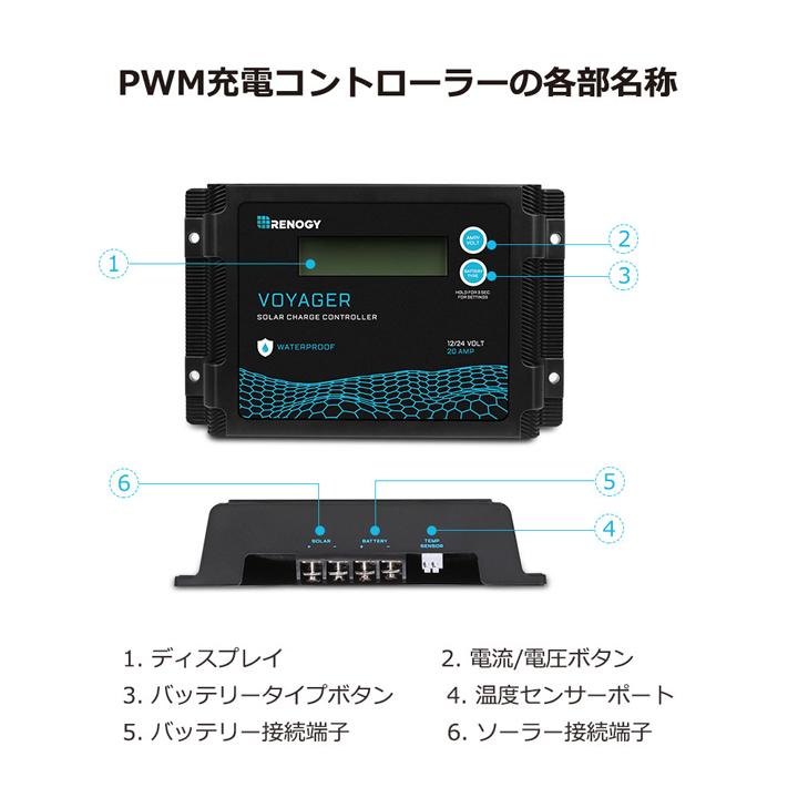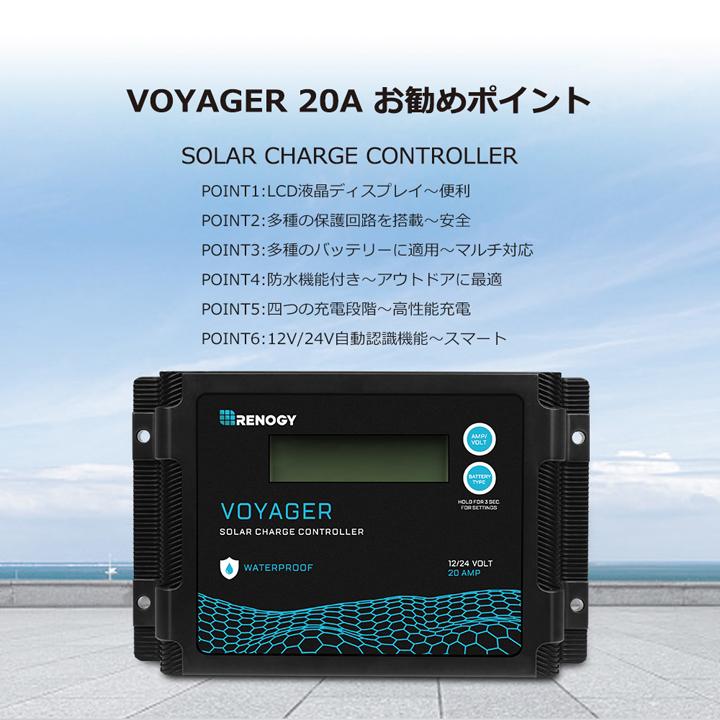 【RCC20VOYP】レノジー RENOGY VOYAGERシリーズ 20A 防水PWMチャージコントローラー (返品不可・代引不可)