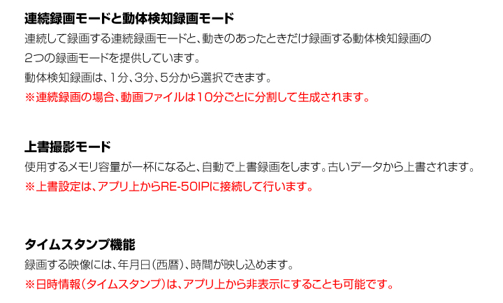 また、Wi-Fi/IPモジュールが組み込まれているので、遠隔地からRE-50IPが撮影する映像をモニタリングする事ができます。