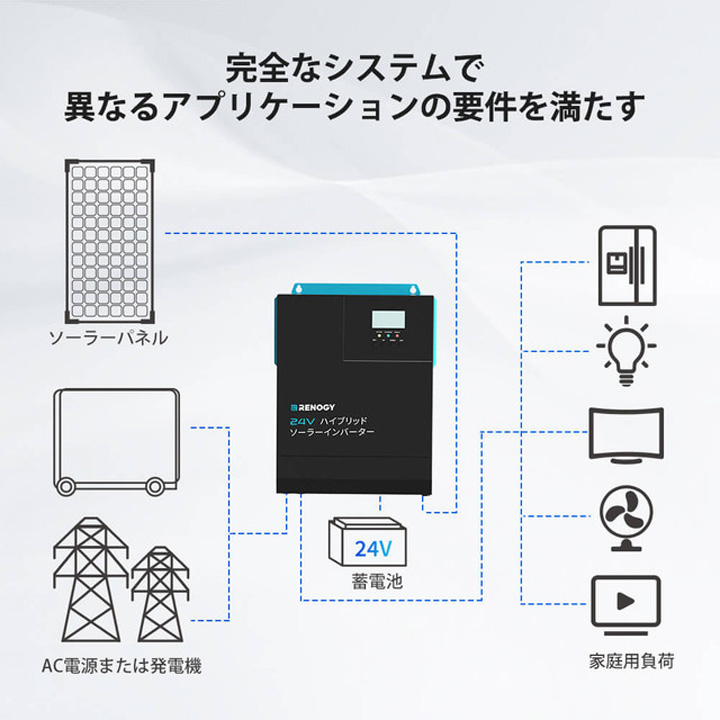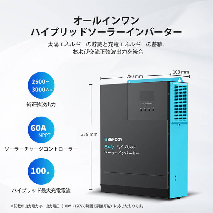 【RIV2430PCS-10S】レノジー RENOGY 2500W 24V 純正弦波ハイブリッドソーラーインバーター (返品不可・代引不可)
