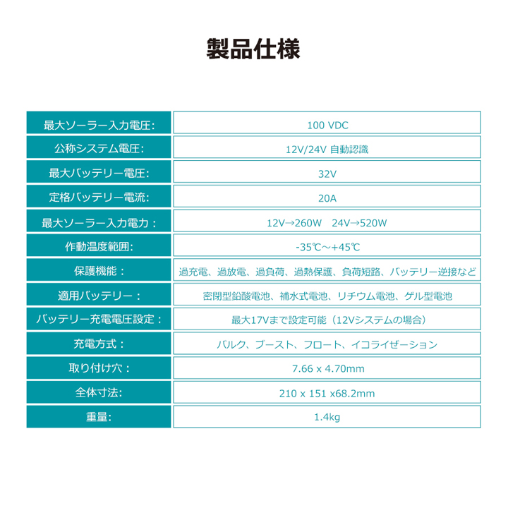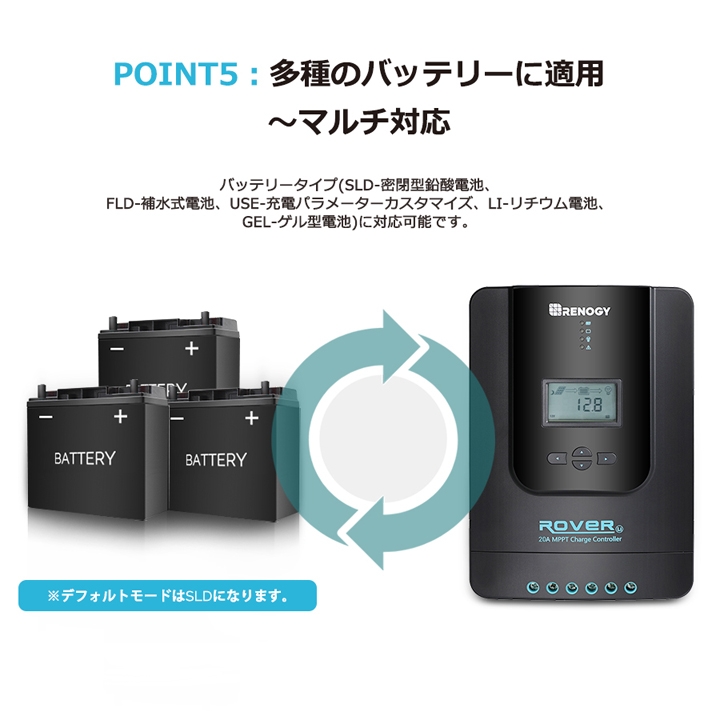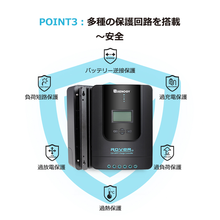 【RNG-CTRL-RVR20】レノジー RENOGY MPPT チャージ コントローラー 20A ROVER LI シリーズ 12V/24Vバッテリーを自動的に認識 (返品不可・代引不可)
