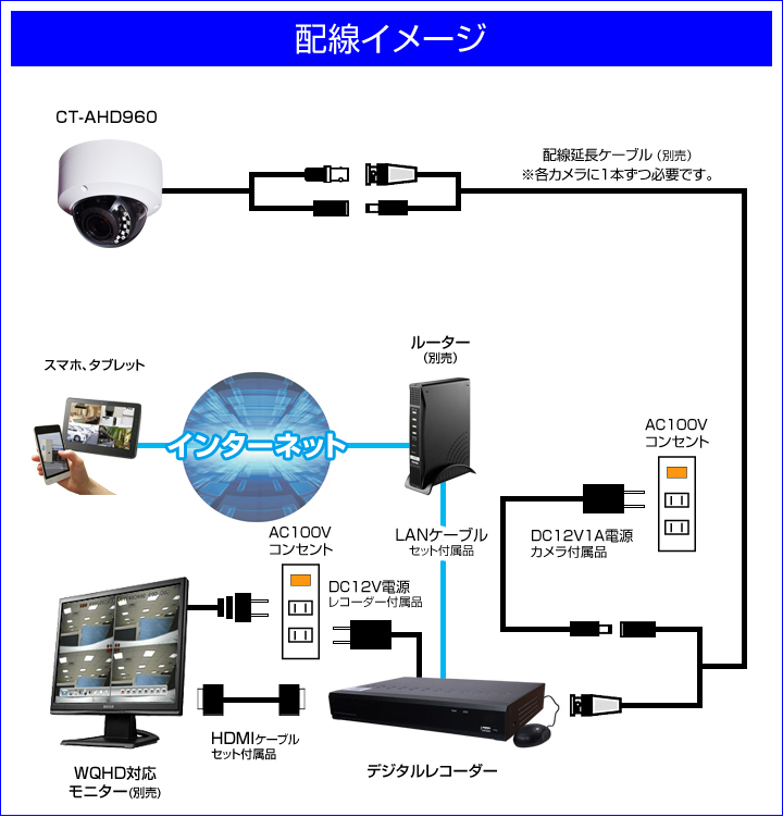 ※ カメラとレコーダー間の接続ケーブルは別売りです。オプション商品よりお求めください。