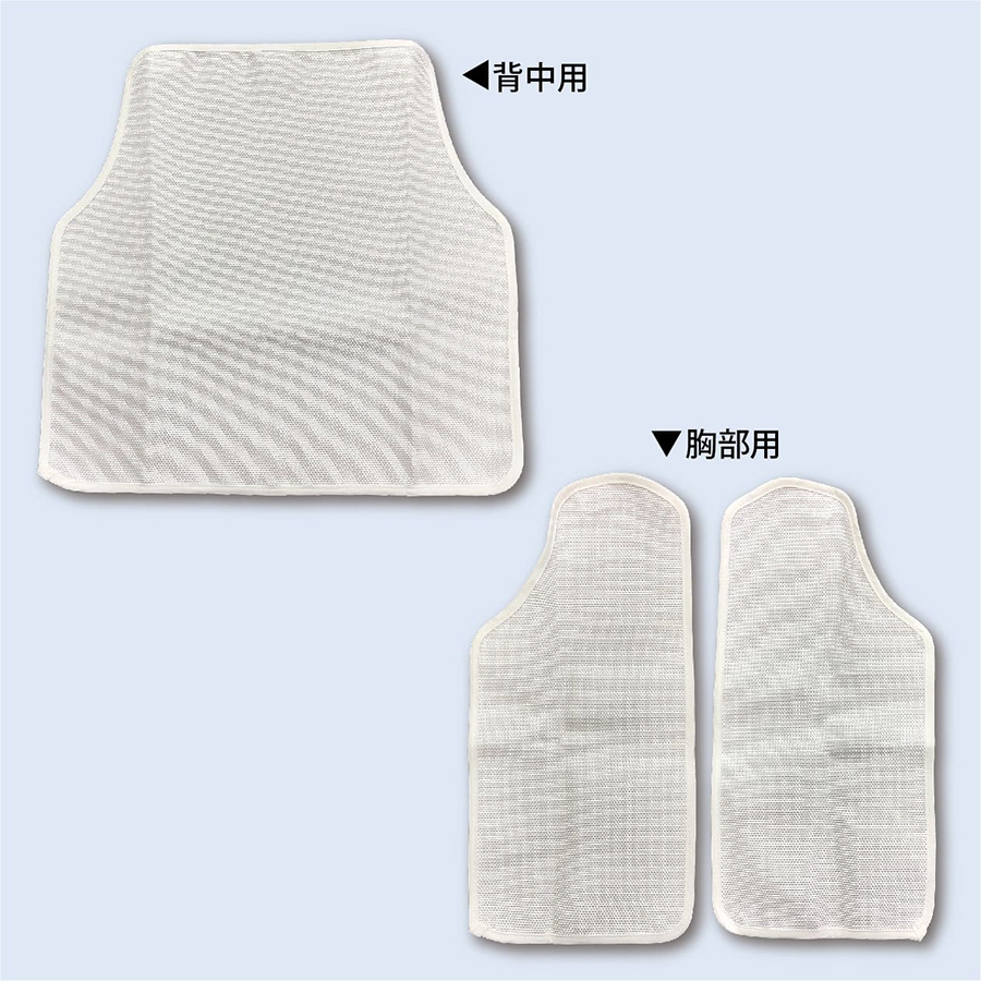 ベスト全体は、抗菌防臭・吸水速乾性のあるメッシュ生地を使用。通気性を良くし、