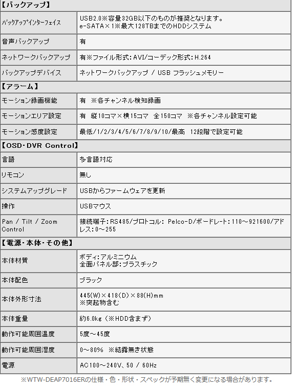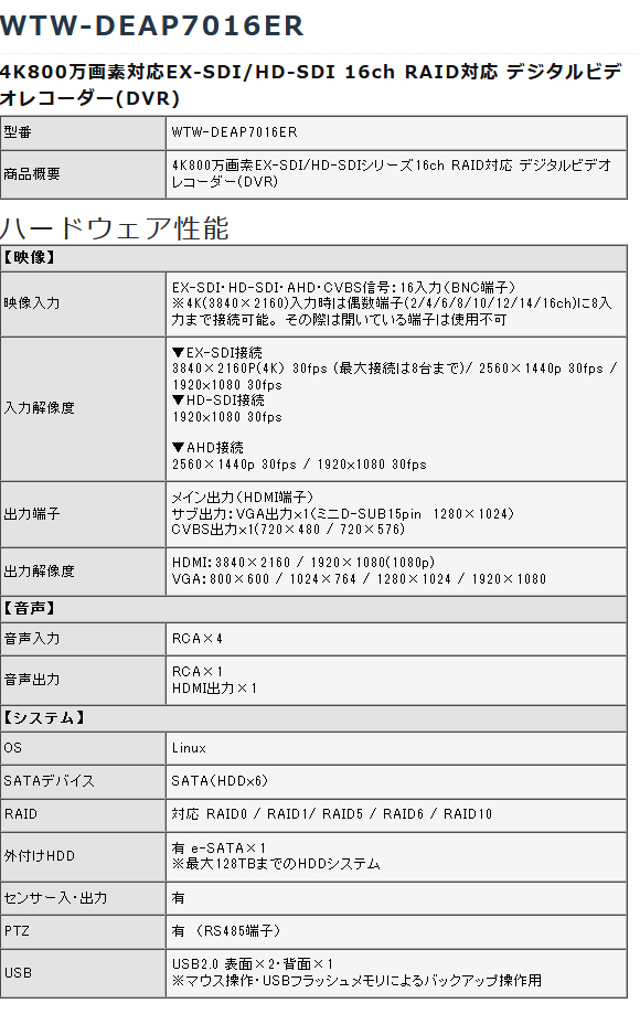 【WTW-DEAP7016ER】4K800万画素対応EX-SDI/HD-SDI 16ch RAID対応 デジタルビデオレコーダー (代引不可・返品不可)