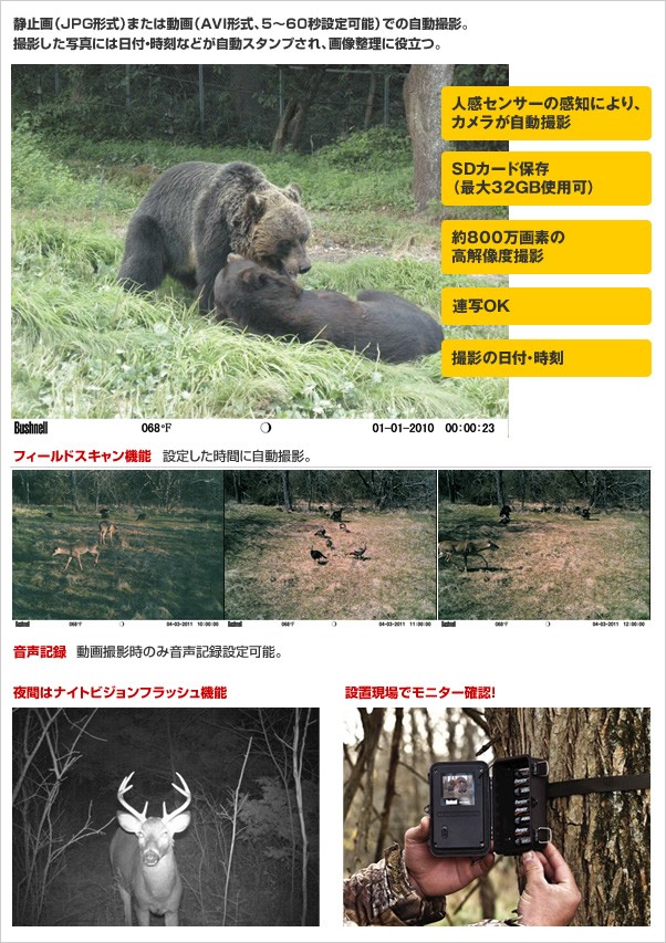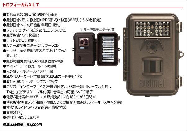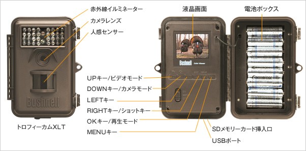 【トロフィーカムXLT】 乾電池で動く屋外センサー暗視カメラ SDカード自動録画機